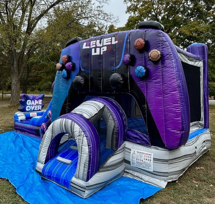 This isn't just another bounce house—it's a full experience that taps into the thrill of leveling up with every jump and starting over with every slide. The vibrant gaming-themed graphics immediately catch kids' attention and set the tone for nonstop action. Kids ages three to thirteen are drawn to the challenge of racing through the bounce area, scaling the climb, and launching down the slide before running back to do it all over again. It's the kind of setup that turns birthday parties, school carnivals, church picnics, and neighborhood block parties across Murfreesboro into events parents and kids remember long after the day ends.